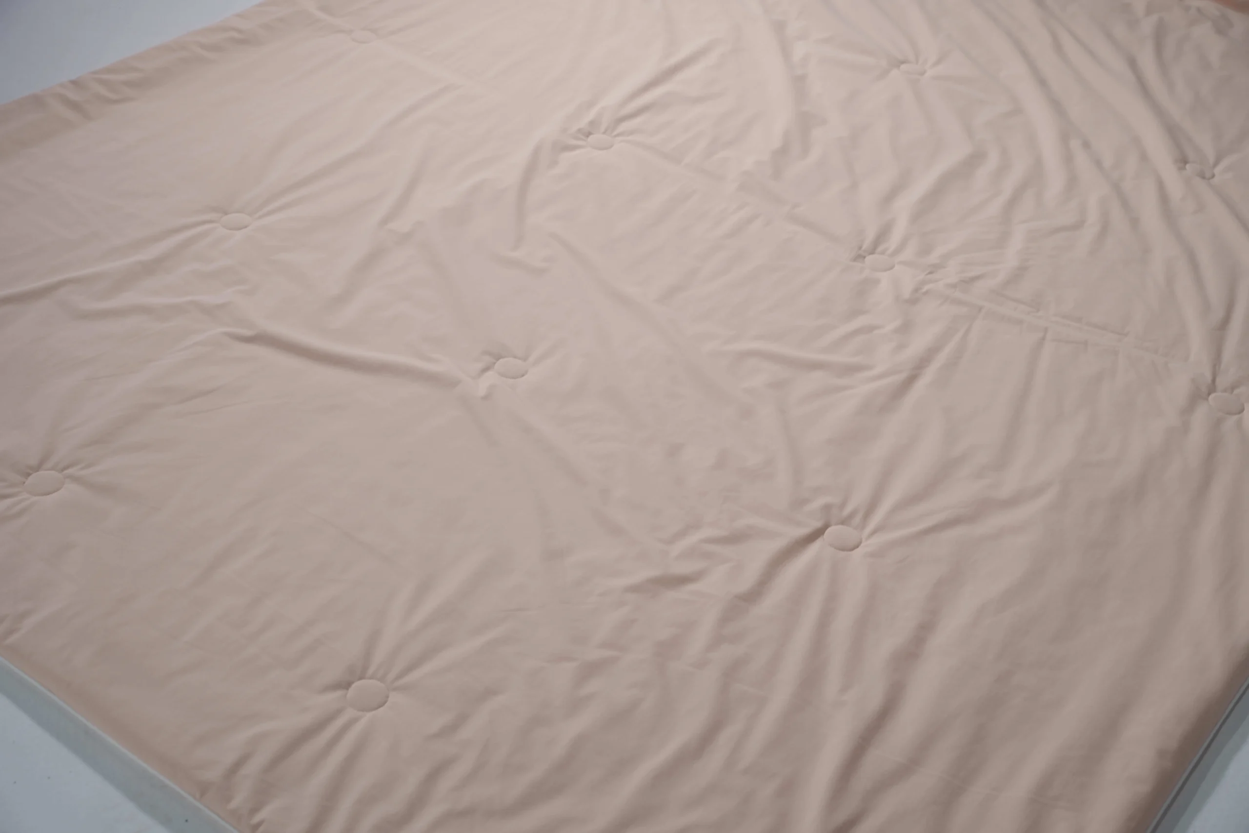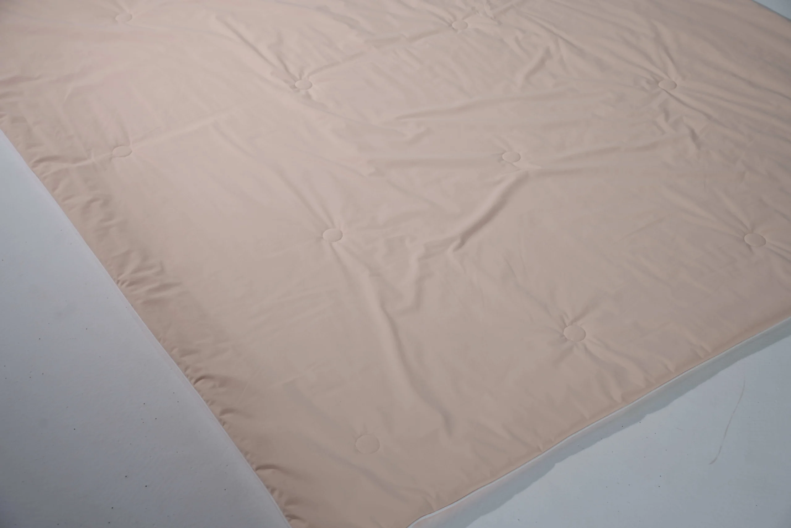 The CoolFlex Reversible Comforter is designed with advanced stretch cooling fabric for maximum comfort and versatility. Both sides are made of 76% nylon and 24% spandex fabric (160gsm), providing a smooth, elastic surface with an instant cooling effect. The filling consists of 100gsm polyester silk-like wadding, lightweight yet fluffy, delivering soft comfort without heaviness. With its dual-sided design, this comforter ensures a refreshing sleep in summer while maintaining year-round usability.